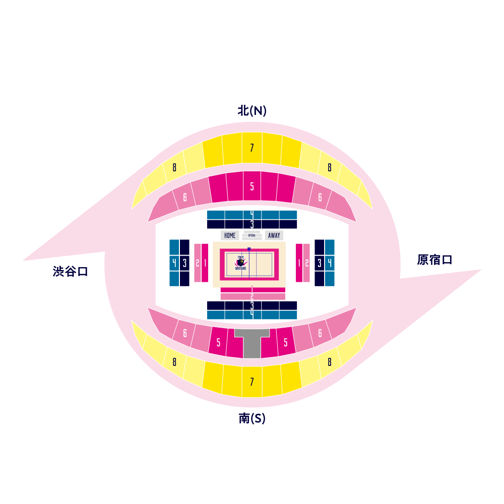 - コートを見下ろす位置にあり、バレーの流れや演出など会場全体を見渡すことができる席。