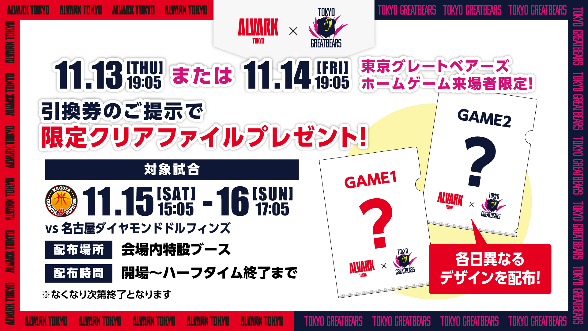 ・対象試合:2025年11月13日(木)19:05 試合開始 東京グレートベアーズ vs ウルフドッグス名古屋